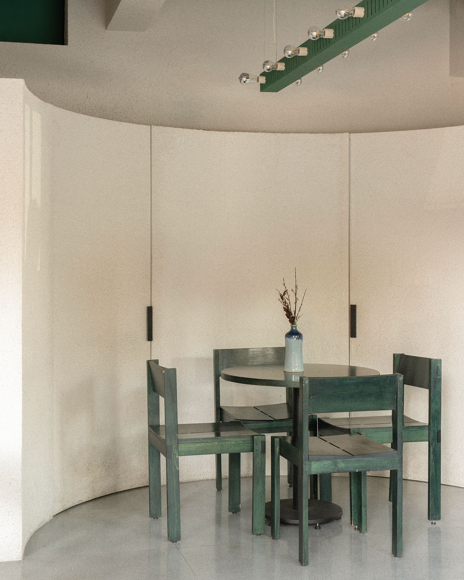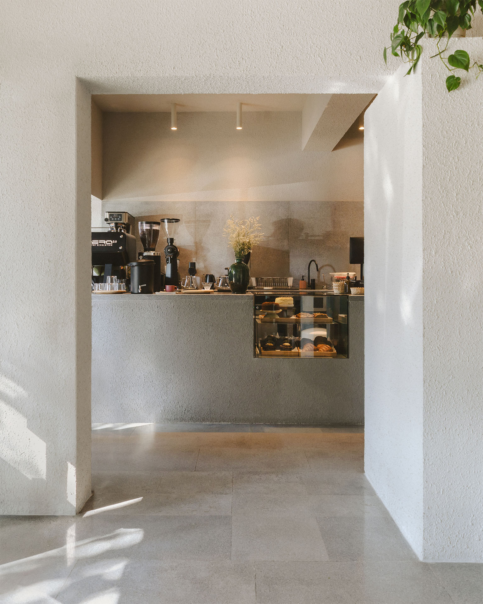 The coffee shop is organized into two adjacent spaces connected by a low wall that provides both visual continuity and functional separation. The first space contains the coffee bar, conceived as an active and expressive zone where preparation, service, and interaction are made visible. This area reinforces Cafeología’s emphasis on education, traceability, and dialogue between baristas and customers.